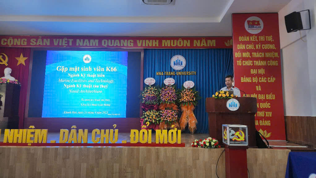 Sáng 23.4.2025 tại Hội trường 1, Trường Đại học Nha Trang, Bộ môn Kỹ thuật tàu thủy tổ chức buổi gặp mặt, trao đổi, định hướng lựa chọn ngành nghề cho sinh viên K66 ngành Kỹ thuật biển ( KTB) và Kỹ thuật tàu thủy.