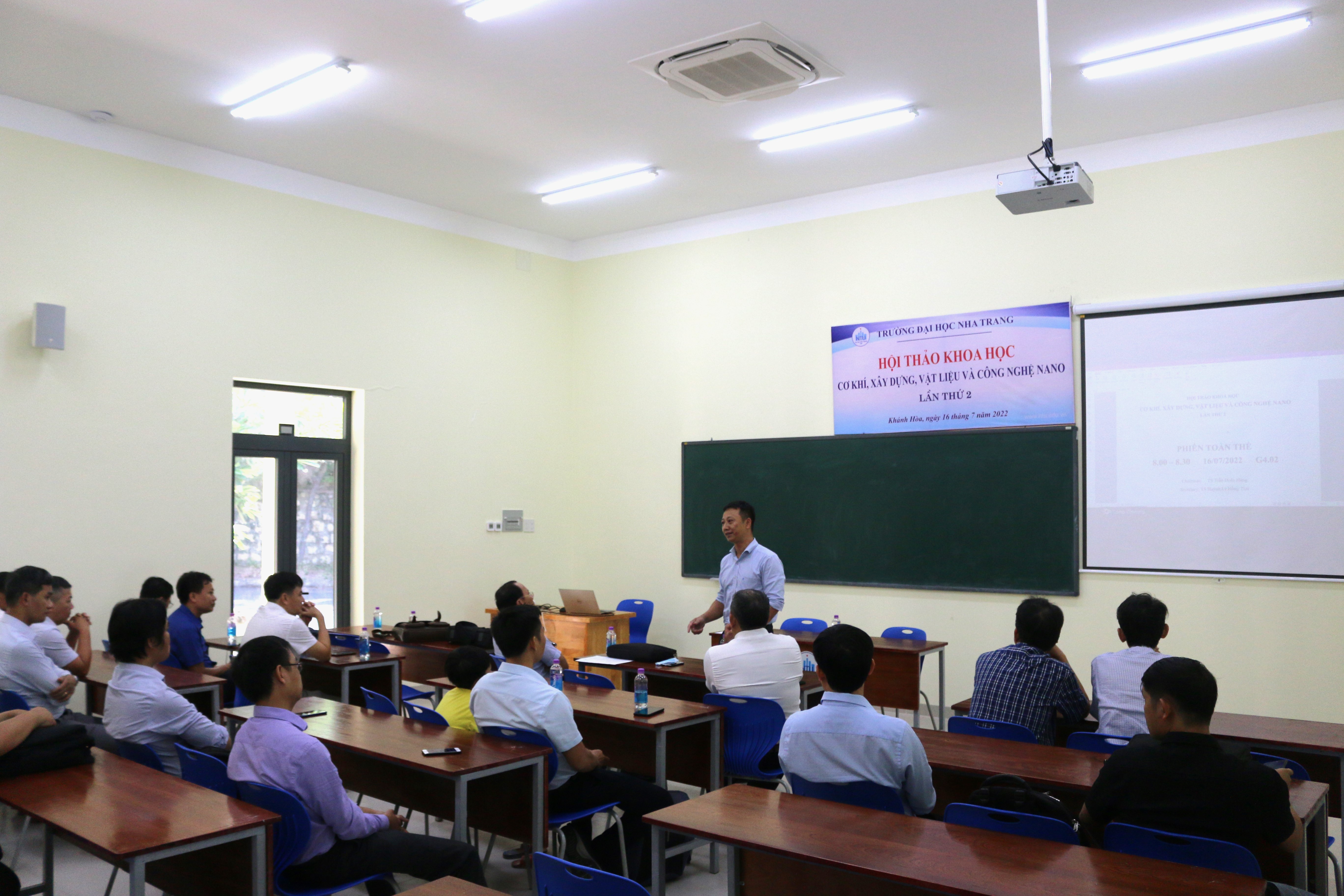 Sáng ngày 17/07/2022 vào lúc 8 giờ, dưới sự chủ trì của TS. Trần Doãn Hùng – Phó Hiệu trưởng Trường Đại học Nha Trang, “Hội thảo khoa học về cơ khí, xây dựng, vật liệu và công nghệ nano-lần 2” tại Giảng đường G4 đã được tổ chức thành công nhằm thông báo kết quả nghiên cứu và chuyển giao công nghệ về lĩnh vực cơ khí, xây dựng, và vật liệu giữa các khoa Cơ khí, Kỹ thuật Giao thông, Xây dựng, học viện Hải quân và Viện NCCT Tàu thủy.